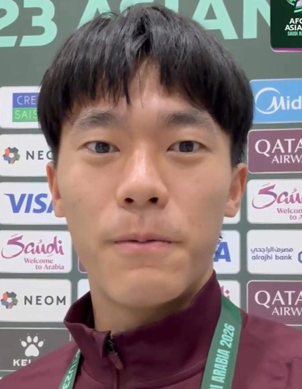 中国的朋友们大家好,我是胡荷韬,既然我们中国队已经来到这个地方(决赛),我们一定会拼尽全力,不留遗憾,然后让我们一起去见证属于我们中国足球的新历史,加油。